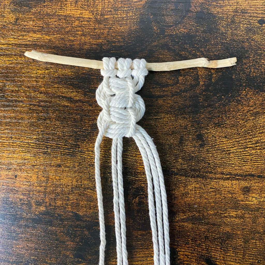 Dieser Knoten besteht aus 3 Garnen, die jeweils doppelt gelegt wurden, so dass 6 Fäden entstehen.